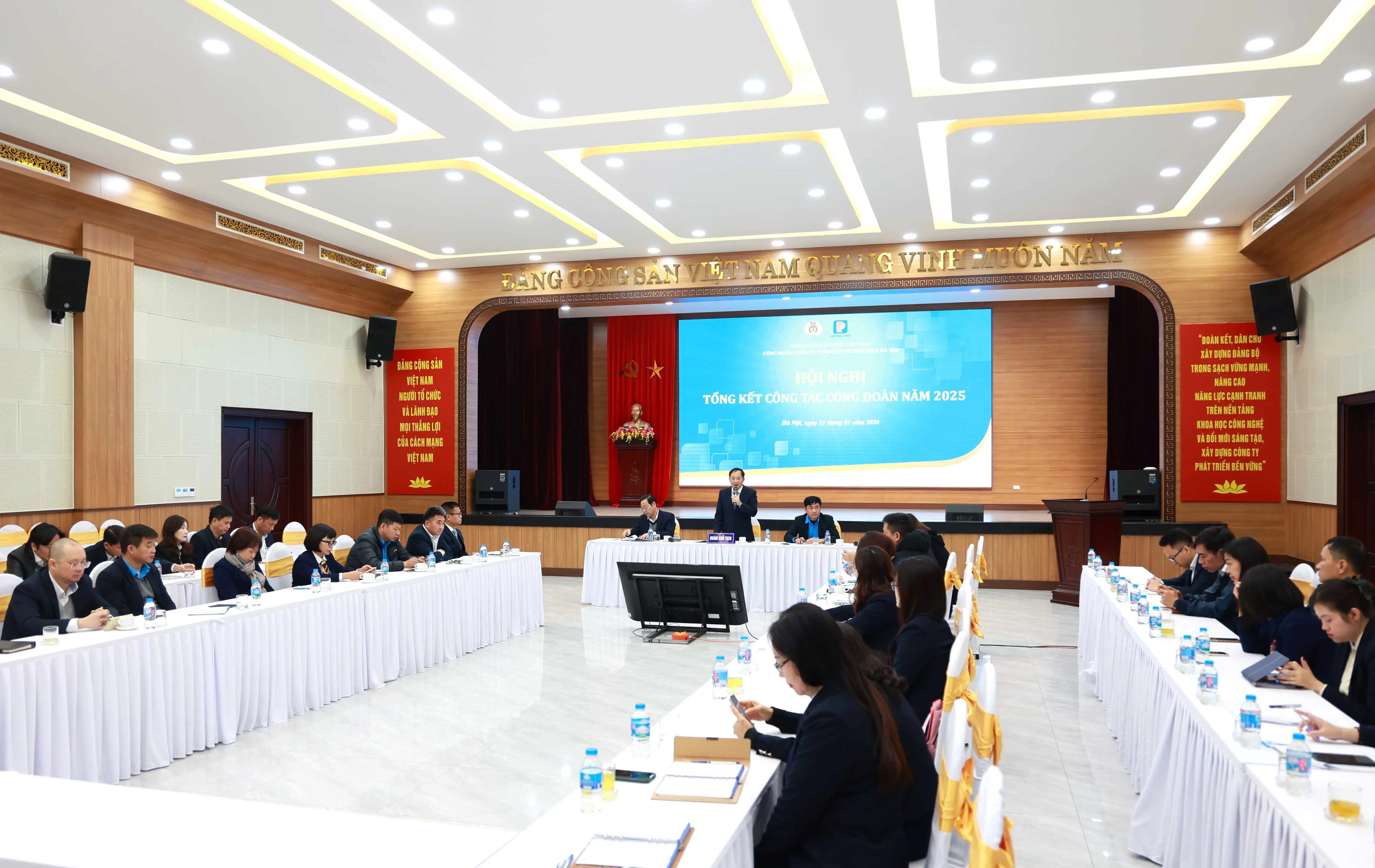 Thực hiện chương trình công tác, ngày 23/01/2026, tại Hội trường Công ty Số 26 phố Đức Giang, P.Việt Hưng Thành phố Hà Nội. Công đoàn Công ty đã tổ chức Hội nghị tổng kết công tác công đoàn năm 2025 và triển khai nhiệm vụ năm 2026, với sự tham gia của các đại biểu đến từ Ban chấp hành, UBKT, Ban Thanh tra nhân dân, các Ban, Bộ phận Công đoàn Công ty; Ban chấp hành các CĐCSTV, Chủ tịch các Công đoàn Bộ phận trực thuộc.
